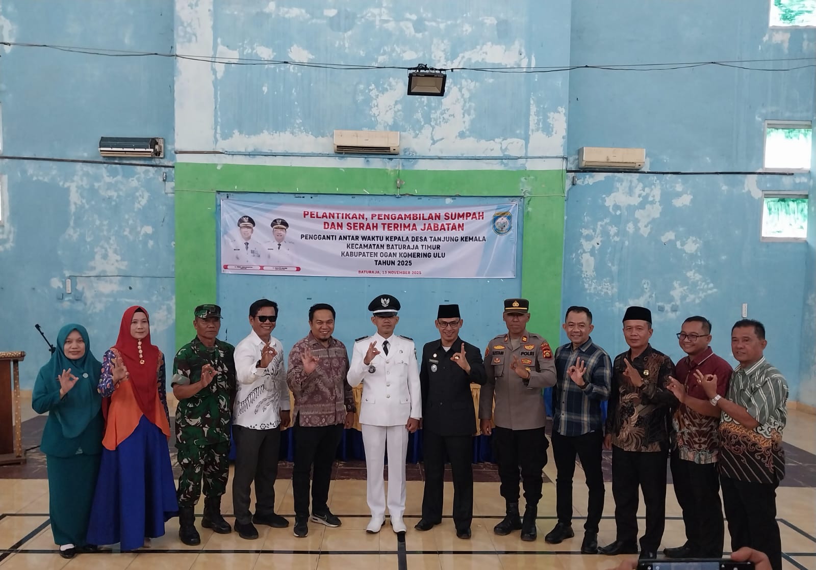 reportaseupdate.com, Baturaja – Setelah dilantik dan diambil sumpah oleh Camat Baturaja Timur Khairuddin Albar SSTP MSi pada Kamis (12/11/2025) siang, Dasril ST resmi meniabat sebagai Pengganti Antar waktu Kepala Desa Tanjung Kemala Kecamatan Baturaja Timur Kabupaten Ogan Komering Ulu (OKU)
